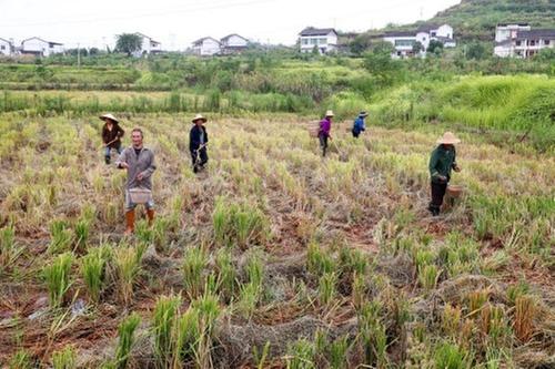 “首先就要除去再生稻稻桩上的草,然后马上就要灌水,每亩施上5公斤的尿素,水稻的损失晚秋来补。”