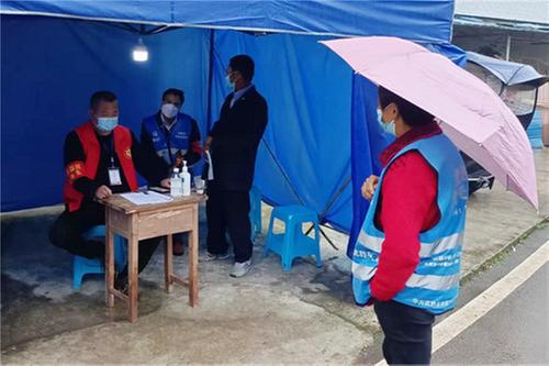 “不出门,戴口罩,不聚集。”每天都能在金牛镇复兴社区听到这样的喇叭声。社区党员志愿者每日在场镇开展巡逻,积极劝导群众严格落实疫情防控措施,同时,各村设置卡点,24小时值班值守,严格执行“逢车必检,逢人必查”的防控要求,筑牢固实防疫安全线。