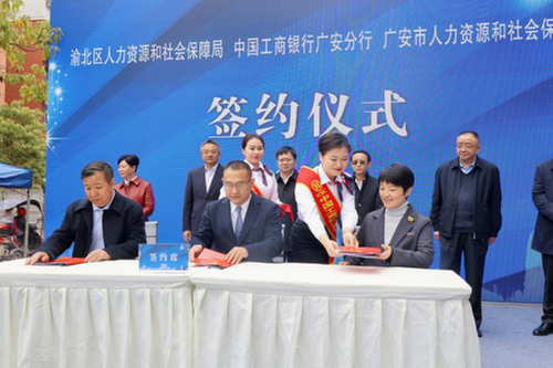 开业仪式上,广安市人力资源和社会保障局、重庆市渝北区人力资源和社会保障局、中国工商银行广安分行三方共同签署了《委托银行受理(办理)人社服务事项协议》。协议的签署明确了该服务网点人社服务事项清单,同时也是人社业务经办向基层延伸的又一实践。