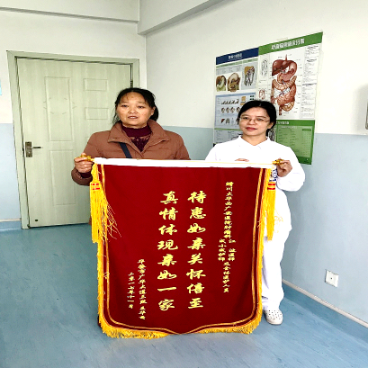 经过一段时间的积极治疗,王先生的病情得到控制,情绪大为好转,家人也感到欣慰。所以,一家人为了感谢肿瘤科医护人员、特别是成老师和江医生的辛勤付出和热诚帮助,在王先生出院之前,特地送来了锦旗。