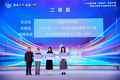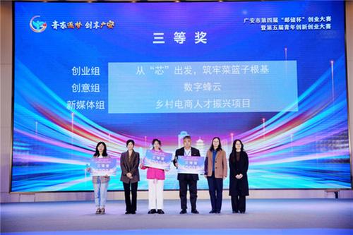 11月20日,以“青春逐梦·创享广安”为主题的广安市第四届“邮储杯”创业大赛暨第五届青年创新创业大赛决赛成功举办。广安市委常委、副市长常晖出席活动并致辞,广安市政协副主席郑建军为获奖选手颁奖,四川省创新创业促进中心主任李勐出席活动并讲话。此次大赛旨在落实创新驱动发展战略、就业优先战略及人才强国战略,推进“大众创业、万众创新”向高质量纵深发展。