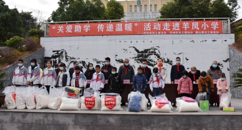 11月30日,巴中市、巴州区、鼎山镇关工委领导一行走进巴州区鼎山镇羊凤小学开展“关爱助学 传递温暖”捐赠活动。巴州区关工委常务副主任张甫平、鼎山镇党委副书记熊二树等出席捐赠活动。