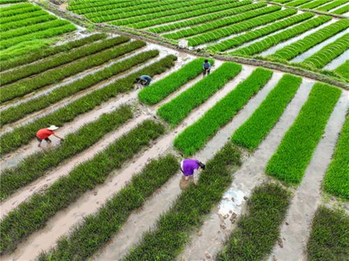 近日,在广安市前锋区代市镇帽合村,村民正在田中扯秧苗,准备移栽彩色水稻。据了解,移栽的彩色水稻将用于港前大道旁的“稻田画”景观布置,选育的彩色水稻经过图案设计、定点测绘、人工栽种、田间管理等环节,随着水稻的生长,将会呈现出预先规划的图案或文字,从而打造专属前锋的稻田文化艺术,助推乡村振兴。