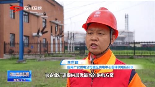 国网广安供电公司城区供电中心前锋供电所所长 李世建:我们派驻“智慧电管家”,为企业扩建提供最优最省的供电方案,除此之外,我们还定期为园区客户提供“一对一”的供电能效服务,助力园区实现绿色低碳发展。