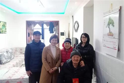 广安区科协龚丽华一行与90高龄退休干部阳裕安及其家人合影