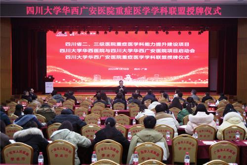 1月18日上午,四川省二、三级医院重症医学科能力提升建设项目区域指导分中心启动会暨四川大学华西广安医院重症医学学科联盟授牌仪式在华西广安医院顺利召开。启动会邀请了省、市资深医院重症医学科领域专家指导交流,100余名广安市重症医学领域分管领导和重症工作者参加授牌仪式。
