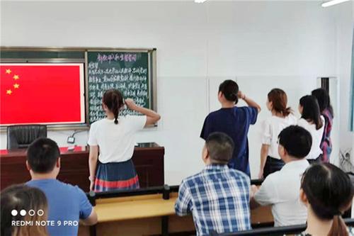 会议在雄壮的国歌声中拉开帷幕,包括三个议程:一是新教师宣誓。四位新教师在学校德育办主任江西老师带领下立下“我要修身立德、为人师表、终身学习……”的铮铮誓言;二是校长李恒伍讲话,李恒伍校长回顾了学校取得的成绩,感谢老师们的辛勤付出,并祝福全体教师节日快乐,并对全体教师提出新学年的新要求;三是颁奖环节,学校对上一学年取得突出成绩的十位教师颁发了奖状。