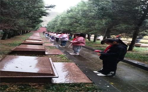 活动中,全体师生在庄严肃穆的氛围中向革命烈士默哀,学生代表向英烈敬献花篮,全体少先队员向英烈们献上了自己亲手制作的纸绢花。少先队员们在老师的带领下拜读革命先烈们的英勇故事,这些事迹不仅让全体师生深受感动,也更加坚定了他们刻苦学习、报效祖国的决心。