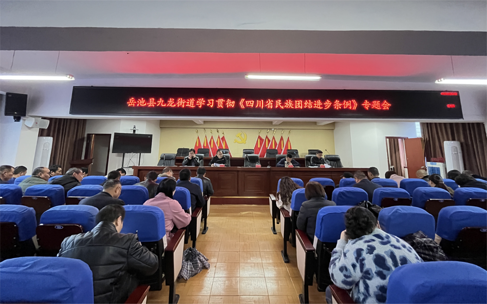 为深入学习宣传贯彻《四川省民族团结进步条例》(以下简称《条例》),近日,广安市岳池县九龙街道组织干部职工、村(社区)书记专题学习《条例》,街道副党工委书记、办事处主任雷曦主持会议。