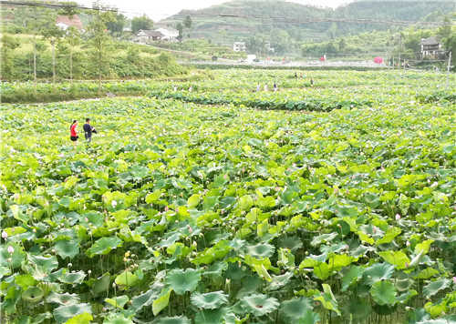 据了解,瞿家店村是岳池县建档立卡贫困村,地理位置偏僻,发展滞后。为带动村民增收,壮大村集体经济,该村依托原生态的自然环境,大力发展乡村生态旅游。经过几年的发展,现如今形成了山上藤椒、山腰桃林、山下荷田的立体乡村生态观光农业旅游格局。
