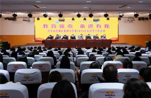 2月23日,巴中市巴州区四小全体教职工齐聚津桥湖校区学术报告厅参加2024年春季开学工作会议。