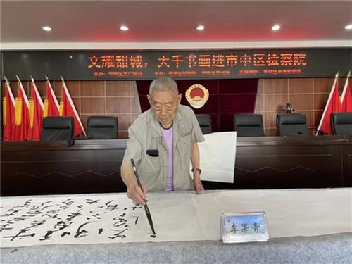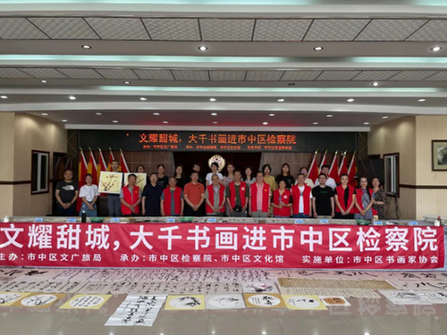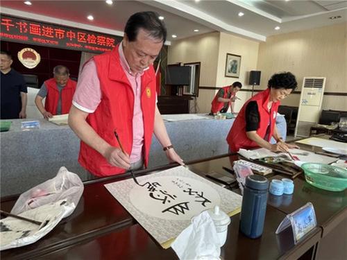 为喜迎二十大胜利召开,加强检察机关文化建设,丰富检察机关文化生活,6月14日,由内江市市中区文广旅局、市中区文化馆、市中区书画家协会共同组织举办的“文耀甜城,大千书画”进基层活动走进市中区检察院,邀请李果青、郭锦泉、田世华、方理元等9位著名书画家现场展示和创作书画作品。