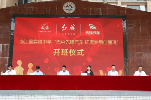 5月17日下午,巴中市南江县实验中学“巴中先锋汽车·红旗梦想自强班”开班仪式在红1塔校区举行。巴中先锋汽车集团执行董事李芬华,副总王皓宇、李猛,南江县教育科技局党组成员、副局长陈立志出席开班仪式。