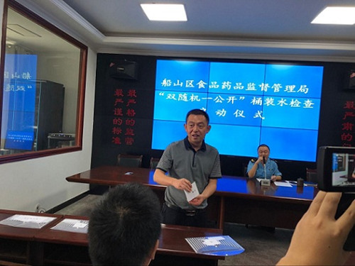 8月9日上午,遂宁市船山区食药监局组织召开“双随机一公开”桶装饮用水检查启动仪式。该局局长刘建勤出席并讲话、副局长蒋贤松主持启动仪式。该局在家领导干部职工、监督抽检公司、新闻媒体等30余人参加了启动仪式。