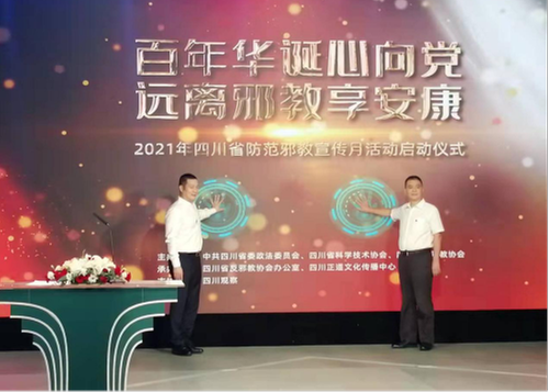 为深入贯彻落实党的十九大和十九届二中、三中、四中、五中全会精神,筑牢广大群众防范抵御邪教侵害的思想防线,为实现人民美好生活、维护社会和谐稳定、推动平安四川建设再上新台阶作出新贡献,9月8日,由四川省委政法委、省科协、省反邪教协会主办,省反邪教协会办公室、省正道文化传播中心承办,中国反邪教网和四川观察支持的“2021年四川省防范邪教宣传月活动”启动仪式暨主题宣讲活动在成都举办。省委政法委、省科协相关领导出席,并共同宣布“2021年四川省防范邪教宣传月活动”正式启动。