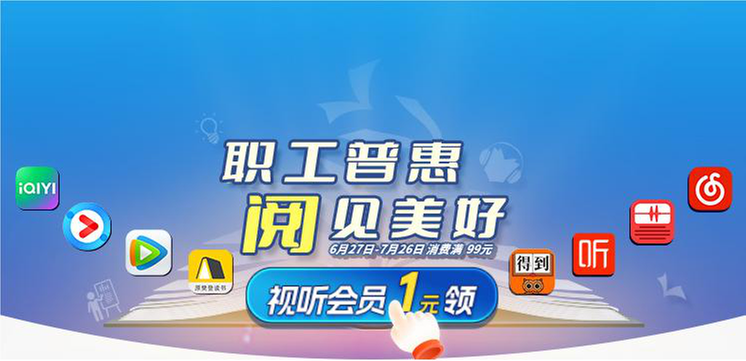 同时,活动期内消费满99元,即可1元换购听书、电子书月卡。“职工普惠大数据识别到超50万职工达到领取条件,并进行了智能弹窗推送。我们希望让崇尚阅读成为融入职工日常的习惯和文化时尚。”活动负责人说道。