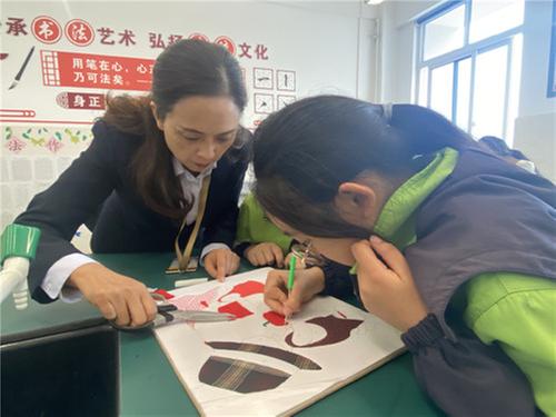 除了有与科技前沿接轨的人工智能课,学校还将中华传统文化从小根植于每个学生心里,布贴画就是其中之一。
