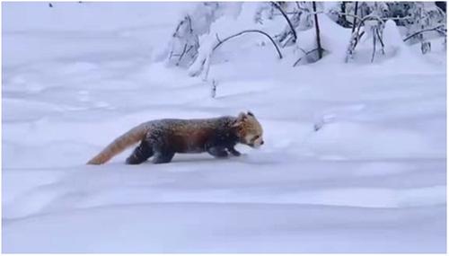 2月8日,洪雅县瓦屋山景区象尔山庄嬉雪场的工作人员偶然间拍到野生小熊猫出来巡山、觅食。拍摄中,小熊猫尽情地在雪地撒欢,憨态可掬的动作招人喜爱,大家纷纷直呼“被萌化了。”