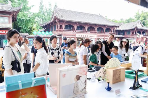 在观看节目展演后,嘉宾们还参观了三苏祠及“中国有三苏—眉山苏氏的家国情怀”主题展、“三苏”家风故事展、“三苏”家风家教读物读本展示、活动成果展、文创产品展,并参与沉浸式非遗互动体验。