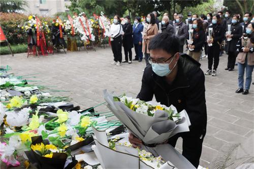 在庄严肃穆的烈士墓碑前,全体党员干部肃立默哀、鞠躬致敬、敬献花束,衷心表达对革命先烈的无尽哀思和缅怀之情,铭记源远流长顽强不屈的民族精神。