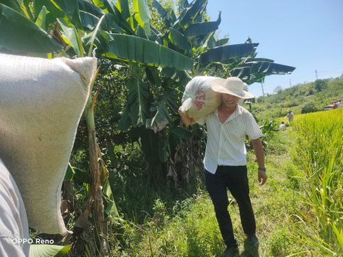 装稻谷、运稻谷……田野里,党员干部头顶炎炎烈日,把一袋一袋稻谷从田间扛到了马路上并运送至贫困户家中。“今天太阳大,收谷子还是比较热的,还好村‘两委’联系了收割机进场收割。我作为一名党员,一名退役军人,能够帮那些缺少劳动能力的村民干点儿活,还是挺有成就感的。”拱桥村退役军人袁达全说道。