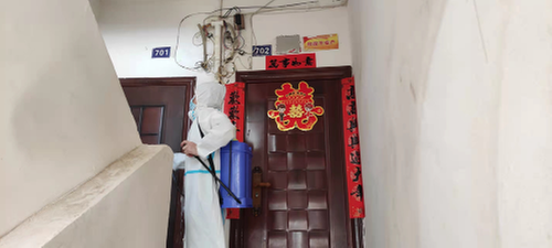 “五老志愿者”身着防护服,携带消杀机,严格按照消杀流程操作,重点对院落死角、单元楼道、健身器材和垃圾桶等重要场所和公共设施进行全覆盖、无死角的消杀工作,用实际行动为疫情防控保驾护航。