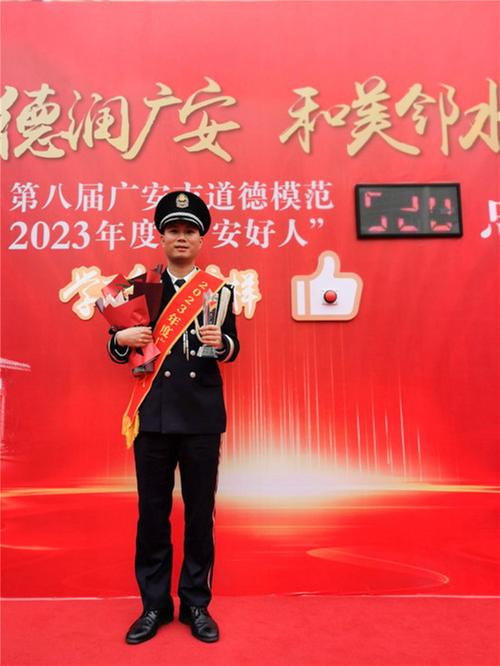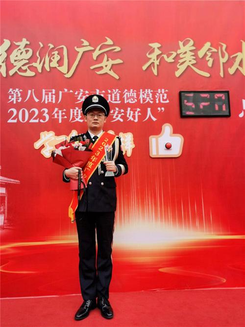 邻水县公安局食品药品犯罪侦查大队教导员荣昌国同志荣获2023年度“‘广安好人’敬业奉献”奖。