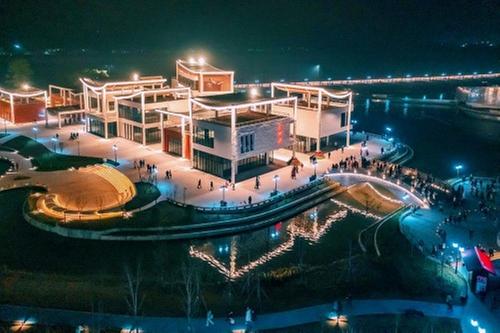当老城区与新业态相遇,街区的内在活力被重新激发、释放,不仅从“形”上焕然一新,而且让传统“潮”起来,让业态“新”起来,赋予商业文化功能,并带动区域氛围,让商业、水、空间形成很好的互动。就这样,唤鱼公园与青神本土文化旅游产业形成完美互补,以文、旅、商、娱、秀的创意性结合方式,塑造青神新的“城市会客厅”。