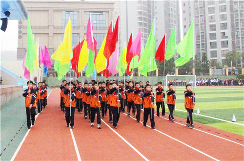 8:30,活动正式开始,6个片区代表队(沿口、飞龙、烈面、乐善、万善、中心)、1个嘉陵小学代表队、1个裁判团代表队踏着整齐的步伐渐次入场。