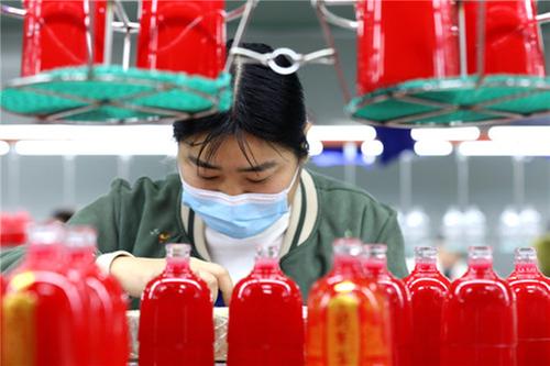 “这是我找到新工作的第一个月,我要努力学习,争取早日成为熟练工。”仁寿经济开发区C区的生产车间内,31岁的当地居民梁玲正在贴花工序线上装饰玻璃酒瓶。相关负责人介绍,熟练工每天能贴800至1000只玻璃酒瓶,每个月能领到6000至9000元不等的工资。
