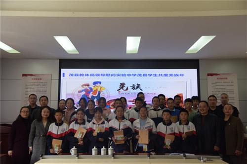 10月29日上午,阿坝州茂县教体局领导一行慰问实验中学茂县学生共度羌年活动在眉山市东坡区实验中学讲学厅隆重举行。茂县教体局一行,实验中学班子成员和60名在实验中学就读的茂县学子参加此次活动。