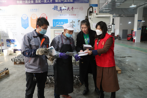 12月3日,在广安市广安区官盛新区爱众智慧产业园汽车配件加工车间,车间工人刘洋正在熟练调试机械设备。谁能想到,他是一名耳朵失聪的残疾人。与他同一个车间的李军告诉笔者,刘洋能够在企业上班,每个月有4000至5000元收入,源于今年2月广安区人社局、经信局、就业局、总工会等单位举办的浔广产业园暨爱众智慧产业园现场招聘会,在招聘会上,李军和刘洋等一共有6人同时被招进汽车配件厂务工。“不仅如此,他们还经常来看望我们,今天总工会、就业局还组织律师向我们开展劳动维权和法制宣传,向我们发放劳保用品,让我们感到很温暖。”