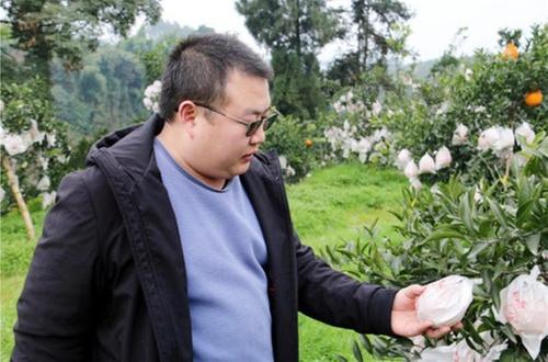 在眉山市青神县白果乡虎渡社区,“椪柑二代”李雪松和青神蜀品堂种植专业合作社联合社成员们正忙着给爱媛套袋。