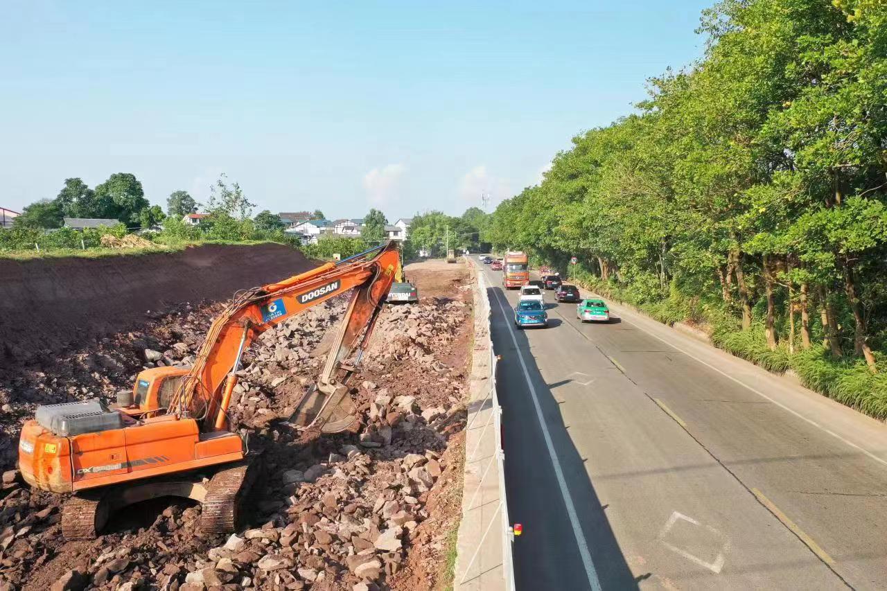 8月1日,国道350线广安枣山至武胜段公路改建工程,全线施工现场大型机械傍晚才开始施工作业。“我们采取‘黑白颠倒’的方式,避高温的同时,更要抢抓晴好天气加紧施工。”项目现场负责人谢原辉说。