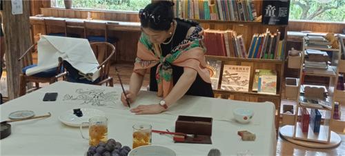 民建省委文化艺术委专家在幸福古村现场创作文艺作品(黄雪婷 摄)