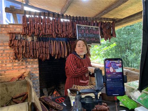 “感谢家人们拍下的订单,这还是我们四川的老乡哦。六斤五花肉要瘦的,好的,我给你选……”这是青神县创业青年刘冬的抖音直播间,正在带货自家生产的腊味。从2010年开始,他就把腊肉香肠拿到了网上卖,随着互联网电商的快速发展,刘冬的小作坊已经发展成为了现代化的工厂。去年他取名叫青神甘家沟腊肉的抖音直播间正式上线,首个“双十一”就取得了不错的业绩。有了经验,他在今年的“双十一”制定了很多优惠活动,订单不断。