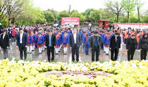 活动中,学校党总支书记、校长马龙与教师代表、80名少先队员向烈士纪念碑行鞠躬礼、默哀。合唱团的全体少先队员献唱了《我们是共产主义接班人》,飘扬的红领巾,嘹亮的歌声,抒发了少先队员们继承烈士遗志,沿着先烈足迹奋勇前进的情怀和志向。