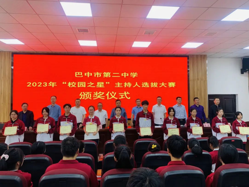 近日,巴中市第二中学举办2023年“校园之星”主持人选拔大赛,评选出优秀主持人奖10名,十佳主持人奖20名,其中高中和初中各10名。