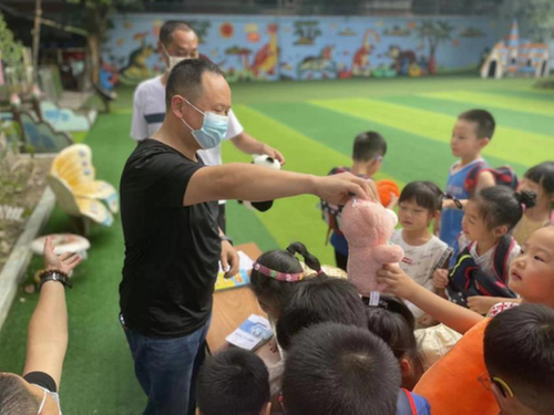 随着撤离警报响起,教师组织幼儿护住头部、弯腰低身、沿着预定路线,快速有序地从教室按指定的路线迅速撤离到室外安全的空旷场地。到达安全区域后,老师迅速清点人数,并上报园长。整个演练过程快速、安全、有序。活动结束后,工作人员现场为幼儿分发小玩偶作为奖励。
