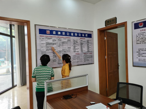 “我想咨询下财产公证怎么办理,需要哪些手续、好久能拿到证……”青神县公证处工作人员根据咨询详细介绍了申请材料、办事流程、办理时限等事项,并递上了一次性告知清单。在体验流程中,了解是否做到了材料最省、流程最优、时间最短,是否实现了“最多跑一次”。