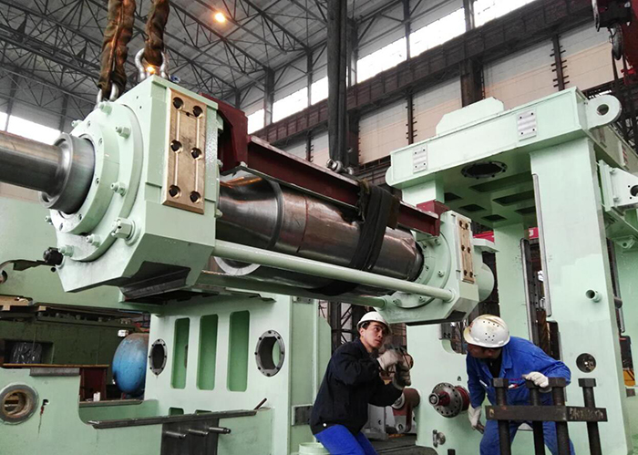近年来,中国二重通过国内大型冶金生产线建设与国外公司技术合作,掌握了常规热轧生产线的产品轧制工艺,突破了热卷箱、弯窜辊、定尺剪、双边剪、矫直机等关键技术,设备的技术水平达到国内领先地位,实现了窄带钢到宽带钢、中厚板到宽厚板的全覆盖。近日,中国二重承制的河北宏兴950项目夹送辊一次性交检合格并下线。图为宏兴950项目夹送辊在中国二重正进行总装的场景。 (张晓健 摄影报道)