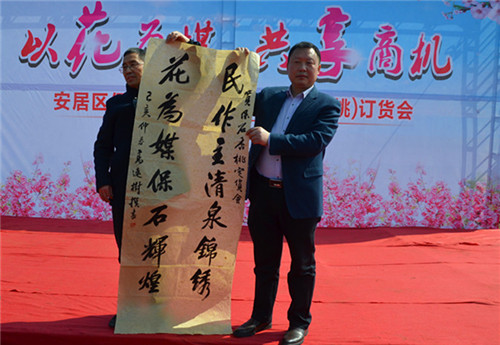 又是春花烂漫时,遂宁市安居区保石镇美丽乡村清泉村俨然成了花的海洋,争奇斗艳的桃花竞相开放。3月18日,由保石镇人民政府主办,粟旺种植专业合作社、清泉村民委员会承办的“以花为媒 共享商机”首届特色农产品(香桃)订货会正式启幕。