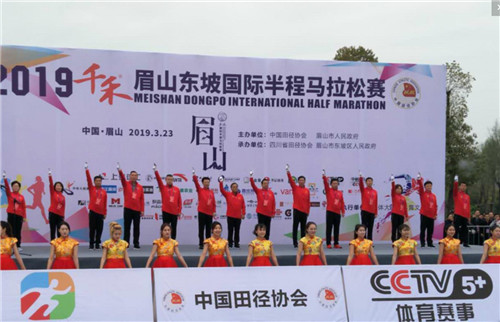 3月23日上午8点,2019“千禾”眉山东坡国际半程马拉松赛在四川眉山东坡城市湿地公园开赛。来自美国、英国、俄罗斯、印度、埃塞俄比亚、孟加拉、新西兰、巴基斯坦等28个国家和地区,以及全国29个省、直辖市的近17000名选手参赛。