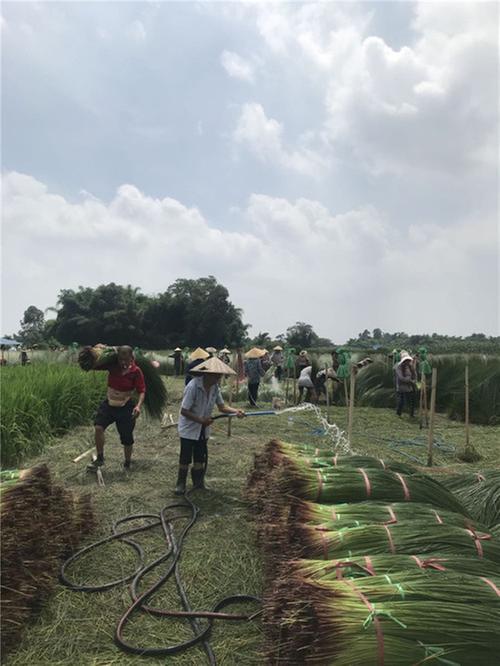 据舒林村副村主任刘波统计,今年全村蔺草种植面积共280亩。 “蔺草种植还有一个特点,就是花费的人工较多一些。”徐德云告诉笔者,“蔺草从种到收的各个环节,都离不开雇用工人来管理,尤其是进入收割时节,更需要众多工人突击抢收。如今天刚开镰就来了42名工人,而最多的时候可以达到100余人。因此,也就带动了周边农民务工增收。”