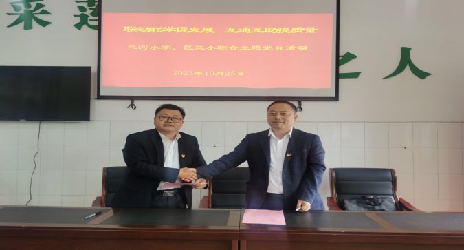 最后,在三河小学支部书记的致辞中拉开了主题交流活动的帷幕。区三小支部副书记组织学习了《习近平新时代中国特色社会主义思想专题摘编》之《教育是国之大计·党之大计》,让党员们深刻领会到教育对党和国家事业发展的重大意义;双方学校教师代表和分管教育教学负责人就提升教育教学质量作了经验交流;双方党支部书记、校长签订了学校结对、联合互助战略协议。