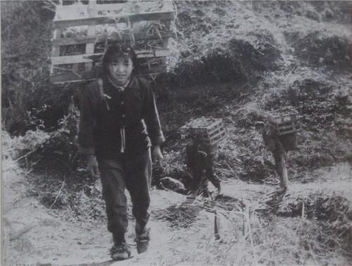 上世纪60年代,人们背树苗上山。洪雅县国有林场 供图