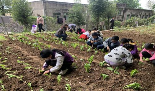 学生在老师的指导下,按照24节气种植时令蔬菜,挖地、培土、施肥、挖沟、垄箱、栽菜,把乡土课堂实实在在搬进了实践基地。老师一边示范蔬菜种植方法,一边给学生讲解移栽蔬菜的注意事项,教孩子们如何给禾苗施肥、灌溉、杀虫等方法。然后,大家小心翼翼地把一株株绿绿的蔬菜苗栽入泥土中,不但亲自体验了劳动的艰辛,还让孩子们从中体会到劳动的光荣感、幸福感和获得感,学到了蔬菜种植技术,积累了劳动经验。