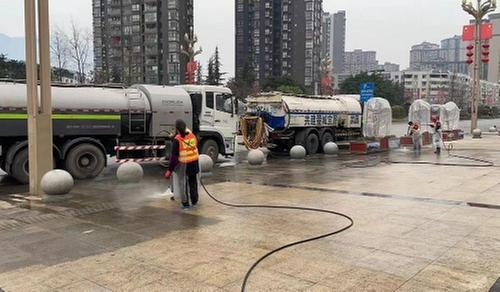 清扫保洁到位。增加巡回保洁频次,增派洒水车2辆、冲洗车2辆、环卫工人30余名,加大会场周边、代表驻地街面道路冲洗力度,同时对沿线道路、绿化带、护栏等实施精细化保洁,全力维护好会场及周边卫生环境。