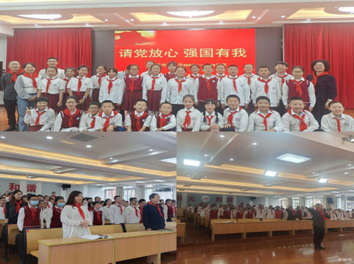 五年级的同学们以“请党放心 强国有我”为主题,开展主题队会。一句句铿锵有力的誓言是孩子们的坚定决心。