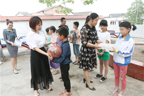 5月24日,广安市广安区妇联干部向兴平镇小学“给爸爸妈妈说说心里话”征文获奖的8名留守儿童发放六一节日礼物,帮助他(她)们完成“微心愿”。